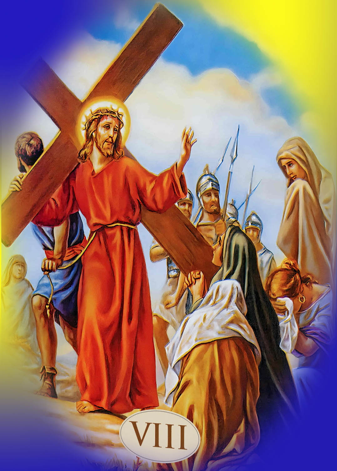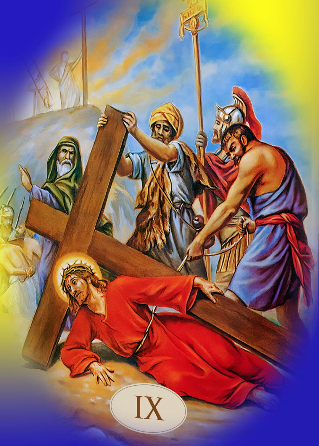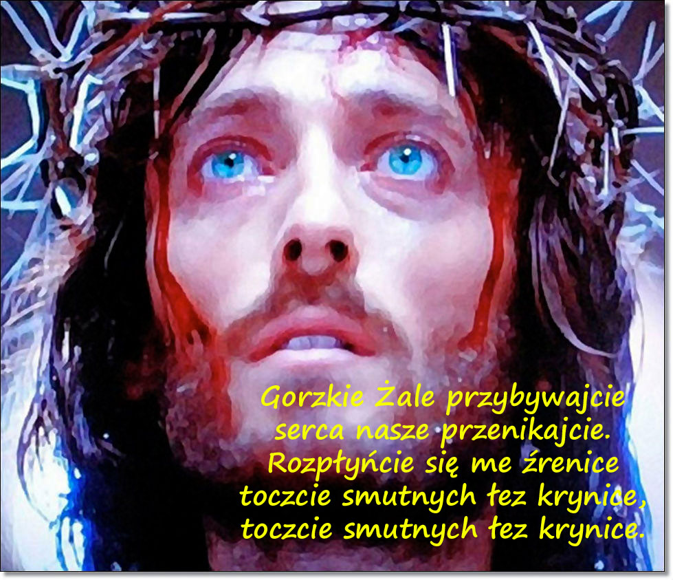 Zapraszamy w każdy piątek Wielkiego Postu na Drogę Krzyżową o godz.17:15. Dzieci zapraszamy na ich Drogę Krzyżową w sobotę o godz. 10.00. Wstęp: Dobrze, że jesteś! Pewnie mógłbyś w ten piątkowy wieczór robić wiele interesujących rzeczy - odpocząć po ciężkim tygodniu czy zobaczyć ciekawy film w telewizji. Ale wybrałeś drogę krzyżową, odpowiedziałeś na wezwanie Jezusa. On jednak nie zaprosił Cię po to, byś tylko tu był. Jezus pragnie Ci coś ważnego powiedzieć. Przyjrzyj się więc w czasie tej modlitwy drodze krzyżowej, ale nie tylko tej, którą przeszedł Jezus. Zobacz drogę krzyżową swojego życia i spróbuj odnaleźć na niej kochającego Cię Boga. Stacja I. - Jezus skazany na śmierć Kłaniamy Ci się, Panie Jezu Chryste i błogosławimy Tobie. Żeś przez krzyż i mękę swoją odkupił świat. ![]() Panie, Ty znałeś bieg mających nastąpić wydarzeń... popatrz na mnie - co zwycięży: strach czy miłość do Ciebie, która pozwoli trwać u Twego boku? Błagam wesprzyj mnie swą łaską i ogarnij Swoim Miłosierdziem niezależnie od tego co uczynię. Stacja II. - Jezus bierze krzyż na swoje ramiona Kłaniamy Ci się, Panie Jezu Chryste i błogosławimy Tobie. Żeś przez krzyż i mękę swoją odkupił świat. ![]() Panie, to jakaś pomyłka! Dlaczego się nie buntujesz, dlaczego milczysz? Ja krzyża nie udźwignę, ja go nie chcę, nie zasłużyłam, to zbyt wiele... dlaczego tak na mnie Patrzysz? Pamiętam... mówiłeś :"Kto chce pójść za Mną ... niech weźmie krzyż..." (Mt 16,24) ...tak, ludzka natura się wzdryga, ale kocham Cię Jezu i choćby krzyż me siły rwał - nie poddam się, bo zawsze mogę liczyć na Ciebie Stacja III. - pierwszy upadek Jezusa Kłaniamy Ci się, Panie Jezu Chryste i błogosławimy Tobie. Żeś przez krzyż i mękę swoją odkupił świat. ![]() Panie, co teraz będzie? Ty już nie masz siły, a droga daleka... Nie mają litości nad Tobą, a przecież to Ty nie złamałeś trzciny nadłamanej, ani nie zgasiłeś nikłego płomyka... proszę przemień spojrzeniem Twojego Miłosierdzia okrutne czyny ludzi. Stacja IV. - Spotkanie z Matką Kłaniamy Ci się, Panie Jezu Chryste i błogosławimy Tobie. Żeś przez krzyż i mękę swoją odkupił świat. ![]() Rozdzierający widok - Maryja Matka Miłsierdzia podbiega do Ciebie Jezu i w niczym pomóc Ci nie może, bo Ty sam wziąłeś nasze winy na siebie, jednak bliskość kochanej Osoby potrafi dodać siły. Naucz mnie Panie wychodzić naprzeciw... Stacja V. - Szymon z Cyreny pomaga dźwigać krzyż Kłaniamy Ci się, Panie Jezu Chryste i błogosławimy Tobie. Żeś przez krzyż i mękę swoją odkupił świat. ![]() Co za ulga, gdy ktoś przychodzi z pomocą... Szymonie czy widzisz różnicę? Jezus w milczeniu, resztkami sił idzie na przód, a ty? Żołnierze Cię zmusili - teraz bardziej jestem podobna/y do Ciebie niż do mojego Pana, którego tak bardzo chciałam naśladować... Stacja VI. - Weronika ociera twarz Jezusa Kłaniamy Ci się, Panie Jezu Chryste i błogosławimy Tobie. Żeś przez krzyż i mękę swoją odkupił świat. ![]() Jaka odważna kobieta, przedarła się przez mur strażników, by zwilżoną chustą otrzeć Twoją zmęczoną twarz... Jakże wiele jeszcze muszę się nauczyć - tu na krzyżowej drodze życia - być miłosierną nie słowem, ale czynem jak uczył nasz Mistrz. Stacja VII - Drugi upadek Jezusa Kłaniamy Ci się, Panie Jezu Chryste i błogosławimy Tobie. Żeś przez krzyż i mękę swoją odkupił świat. ![]() Jak to, podnosisz się Panie? W czym tkwi tajemnica Twojego zaparcia? Nowych pokładów sił? Ale ja już dalej nie dam rady. "Panie zmiłuj się nade mną i dźwignij mnie" (Ps. 40,11). Stacja VIII. - Niewiasty Kłaniamy Ci się, Panie Jezu Chryste i błogosławimy Tobie. Żeś przez krzyż i mękę swoją odkupił świat. ![]() "Córki Jerozolimskie" - Ty Jezu zauważasz wszystkich dookoła, ja skupiam się na swoim cierpieniu - Panie bądź i dla mnie Miłosierny. Stacja IX. - Trzeci upadek Jezusa Kłaniamy Ci się, Panie Jezu Chryste i błogosławimy Tobie. Żeś przez krzyż i mękę swoją odkupił świat. ![]() Już niedaleko mój Panie, miłość rozrywa Twoje Serce i z wielkim cierpieniem, ale dźwigasz się by iść na przód. Boże, towarzyszenie Ci w każdej sekundzie Twojego cierpienia graniczy z cudem - gdyby nie Twoja łaska, już dawno musiałabym zawrócić. Stacja X. - Odarcie z szat Kłaniamy Ci się, Panie Jezu Chryste i błogosławimy Tobie. Żeś przez krzyż i mękę swoją odkupił świat. ![]() Podłość ludzka nie zna granic - Jezu, jaki jesteś dzielny, wszystkie upokorzenia znosisz z miłości do Ojca i do człowieka, nie sprzeciwiasz się niczemu - bo do samego dna chciałeś wypić kielich goryczy. Spraw by moje usta były miłosierne, gdy to ja w życiu przeżywać będę swoją dziesiątą stację. Stacja XI. - Przybicie do Krzyża Kłaniamy Ci się, Panie Jezu Chryste i błogosławimy Tobie. Żeś przez krzyż i mękę swoją odkupił świat. ![]() Oto kres doczesnego zmagania, wycieńczony jesteś Panie... Jednak resztkami sił rozchylasz ramiona, by dać światu znak, że czekasz na każdego człowieka z otwartymi ramionami... Czy i tu jestem blisko Ciebie? Stacja XII. - Jezus umiera na krzyżu Kłaniamy Ci się, Panie Jezu Chryste i błogosławimy Tobie. Żeś przez krzyż i mękę swoją odkupił świat. ![]() Jezu, Pasterzu, co Cię spotkało za miłość, dobro, ciepło, prawdę? Kona, umiera Nieśmiertelny... Uszło z Ciebie życie, a z serca polały się jeszcze zdroje miłosierdzia... Do ostatniej chwili szukałeś usprawiedliwienia dla oprawców. Czy jestem pod krzyżem i trwam? Czy szukam raczej drogi ucieczki, by nie patrzeć na zło? Stacja XIII. - Zdjęcie z krzyża Kłaniamy Ci się, Panie Jezu Chryste i błogosławimy Tobie. Żeś przez krzyż i mękę swoją odkupił świat. ![]() Zmrok okrył ziemię, martwe Twoje Ciało Panie z miłością przytula Maryja,