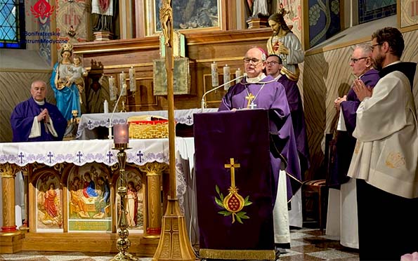Święto patronalne Zakonu Szpitalnego św. Jana Bożego (Bonifratrów) Kaplica pw. Aniołów Stróżów powstała w 1872/4 roku wraz z budową Szpitala i Klasztoru Zakonu Bonifratrów. Jest najstarszym obiektem sakralnym i szpitalnym w dzielnicy i jednym z trzech najstarszych w mieście Katowice. Ma szczególne znaczenie dla historii lokalnej. Zachowana bez znaczących przeróbek i przebudowań przez cały czas - jedynie w okresie okupacji hitlerowskiej była zamknięta - zawsze służyła mieszkańcom Katowic stając się miejscem szczególnie ważnym w życiu tej górniczej i hutniczej dzielnicy. ![]() Kaplica (wraz z budynkami klasztorno-szpitalnymi) stanowi część zespołu sakralnego ufundowanego przez ks. Leopolda Markiefkę, wybitnego duszpasterza, który sprowadzając do Bogucic Bonifratrów podniósł cywilizacyjnie - wyprzedając w tej mierze nawet Katowice - Bogucice rozwijając opiekę zdrowotną i pomoc społeczną. Z okazji zbliżającego się świeta Patronalnego Arcybiskup Andrzej Przybylski odwiedził wspólnotę bonifratrów w 4 marca 2026. Podczast tej wizyty w kaplicy odprawił Mszę Świętą powierzając Bogu wspólnotę bonifratrów , personel, oraz dobroczyńców. ![]() |