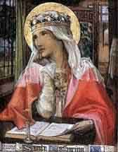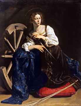 Dzień Powszedni albo wspomnienie św. Katarzyny Aleksandryjskiej, dziewicy i męczennicy 25 listopada 2025; Rok C, I : Katarzyna wywodziła się z królewskiego rodu, urodziła się w 294roku po Chrystusie w Aleksandrii. Została obdarzona przez naturę wyjątkowymi zdolnościami. Zdobyła w Aleksandrii wszechstronne wykształcenie i wielu uczonych pogańskich pociągnęła do wiary w Chrystusa. Już od dzieciństwa zaskakiwała swoim niezwykle chłonnym umysłem. Jej nauczycielami byli najsławniejsi mędrcy, dzięki czemu uzyskała solidne wykształcenie i przyjęła wiarę chrześcijańską. Za panowania cesarza Maksencjusza nakazano wszystkim w Cesarstwie Rzymskim składać ofiary bogom. Wtedy to 18-letnia Katarzyna, dziewica wspaniałej urody i tęgiego umysłu, wystąpiła przed cesarzem, mówiąc mu o niedorzeczności tego nakazu. ![]() Zarzuciła mu okrucieństwo i niesprawiedliwo w stosunku do prześladowanych chrześcijan. Cesarz nie potrafiąc się oprzeć mądrości argumentacji Katarzyny, wyznaczył 50 uczonych filozofów, aby ją przekonali o niedorzeczności wiary w Chrystusa. Niestety dziewczyna była nieugięta, co więcej, przeciągnęła mędrców na swoją stronę, za co ponieśli śmierć męczeńską. W czasie prześladowań chrześcijan w IV w., odrzucając prośbę władcy wschodniej części imperium rzymskiego Maksymiana o swoją rękę. Katarzynę uwięziono a ta podczas odwiedzin nawróciła cesarzową Augustę i towarzyszącego jej Porfirjusza z 200 żołnierzami. Za karę Katarzyna miała się wyrzec swej wiary przed cesarzem. Nie zrobiła tego. Została skazana na śmierć przez z broniącą ją cesarzową Augustą i Porfirjuszem. Gdy uruchamiano machinę na której miała umrzeć, nagle pękły sznury, którymi była związana, a machina się rozpadła. W ostateczności ścięto ją mieczem ok. roku 311. Tradycja podaje, że jej ciało zostało przeniesione na górę Synaj przez aniołów. Kult i okoliczności męczeńskiej śmierci Katarzyny rozsławił Jej imię. Był i jest niesłychanie rozpowszechniony. W VI w. na górze Synaj wybudowano klasztor ku Jej czci, w którym przez wieki prowadzono badania z zakresu kultury wczesnochrześcijańskiej. ![]() Obraz Caravaggio ![]() Obraz Lorenzo Lotto Il Ritratto Del Vescovo - Mistyczne zaślubiny Atrybutem św Katarzyny jest pierścień zaręczynowy, wkładany jej na palec przez Dziecię Jezus - jest to symbol mistycznych zaślubin z Chrystusem |
