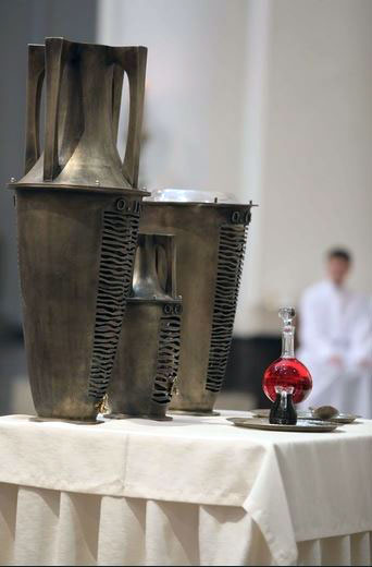 TRIDUUM PASCHALNE Jak szybko minął czterdziestodniowy okres Wielkiego Postu! Być może nie zdążyliśmy jeszcze podjąć żadnych postanowień, a może przeciwnie: przez wyrzeczenia podjęte z miłości, przez przyjęcie krzyża, który jest obecny w naszym życiu, zbliżyliśmy sie do Jezusa. Szczytem roku liturgicznego i Wielkiego Tygodnia jest Święte Triduum Paschalne Męki i Zmartwychwstania Pańskiego. Obejmuje ono liturgię Mszy Wieczerzy Pańskiej, sprawowaną wieczorem w Wielki Czwartek, wielkopiątkową liturgię Męki Pańskiej oraz najbardziej uroczystą i najpiękniejszą ze wszystkich liturgii Kościoła - Wigilię Paschalną sprawowaną po zapadnięciu zmroku w Wielką Sobotę - w Wielką Noc. Triduum kończy się wieczorem w Niedzielę Zmartwychwstania. Niedzielą Palmową wchodzimy już w Wielki Tydzień, który poprowadzi nas ku tym najpiękniejszym Świętom: Świętom Wielkanocnym, Świętom Paschalnym. Jest to czas jedyny, najważniejszy w całym roku liturgicznym, czas kiedy bedziemy mogli pochylić sie nad tajemnicą Męki, Śmierci i Zmartwychwstania Jezusa, tajemnicą naszego Zbawienia. "Tak bowiem Bóg umiłował świat, że Syna swego Jednorodzonego dał, aby każdy, kto w niego wierzy, nie zginął, ale miał życie wieczne" (J. 3, 16) Dlatego właśnie te trzy dni, zaczynające sie Mszą Wieczerzy Pańskiej w Wielki Czwartek, a kończące sie Nieszporami w Wielką Niedzielę Zmartwychwstania Pańskiego są tak ważne. Będziemy świętować Paschę Jezusa, kiedy oddał życie z miłości do nas po to, byśmy my mogli żyć, byśmy mieli życie w pełni, w obfitości. Będziemy świętować czas, kiedy po raz pierwszy powiedział: "To jest ciało moje, które za was bedzie wydane" (Łk. 22, 19) Teraz możemy codziennie przyjmować dar Jego ciała, Jego obecności; kiedy "uniżył samego siebie, stawszy sie posłusznym aż do śmierci" (Flp. 2, 8), tak bardzo pokorny i do końca posłuszny woli Ojca, wydał samego siebie za nas, byśmy mogli cieszyć sie teraz wolnością dzieci Bożych; kiedy zwyciężył śmierć i zmartwychwstał dla nas, byśmy mogli żyć na wieki. Postarajmy sie podziękować Jezusowi za to wszystko. Zostawmy na chwilę - właśnie na te trzy dni - wszystkie inne, mniej ważne sprawy, na które przecież tyle mamy czasu w ciągu roku. Wpatrujmy sie w te dni w Niego, w Jego krzyż, trwajmy przy Nim, rozradujmy sie Jego zmartwychwstaniem, Jego zwycięstwem. To On jest Zbawicielem świata, jest moim i twoim Zbawicielem. I teraz tak bardzo pragnie, by Jego Pascha stała sie także naszą paschą, byśmy razem z Nim przeszli ze śmierci do życia, z niewoli do wolności, z życia w ciemności do życia w Jego świetle. Pozwólmy Mu na to, przyjdźmy do Niego! On, Zmartwychwstały, pragnie nas spotykać, pragnie nam błogosławić, pragnie nas tak zwyczajnie ucieszyć różnymi wydarzeniami dnia, w których objawi swoją łaskę i pomoc. Trwajmy przy Nim, zaufajmy Mu. On Żyje! Wielki Czwartek 2 kwietnia 2026; Rok A, II : Uobecnia się wśród nas wydarzenie z Wieczernika, w czasie którego Jezus Chrystus ustanowił sakrament Eucharystii, oraz polecił go sprawści i wdzięczności za te dary odśpiewamy w czasie Mszy św. hymn "Chwała na wysokości Bogu", który był opuszczany przez cały okres Wielkiego Postu; odezwą się również dzwony, by podkreślić podniosły nastrój tych chwil. ![]() W Wielki Czwartek w kościółach katedralnych odprawiana jest Msza Krzyżma Świętego. Niewielu ludzi ma okazję brać udział w uroczystej porannej Mszy św. Krzyżma, w czasie której biskup konsekruje krzyżmo i błogosławi oleje: katechumenów i chorych. A księża odnawiają swoje przyrzeczenia kapłańskie i proszą lud o modlitwę w ich intencji. Podczas tej mszy następuje poświecenie olejów, które będą potrzebne do namaszczenia chorych, namaszczenia chrzcielnego, namaszczenia święceń. Na konsekracje olejów składa się piękny liturgiczny gest, tzw. tchnienie. Czytamy w Księdze Rodzaju, że Bóg daje człowiekowi "tchnienie życia". To samo tchnienie stosuje też Pan Jezus, np. gdy udziela po Zmartwychwstaniu Apostołom władzy rozgrzeszania (zob. J 20,23n). Dziś tchnienie stosowane jest w liturgii fakultatywnie przy konsekracji Krzyżma w Wielki Czwartek i błogosławieniu wody chrzcielnej w Wigilię Paschalną, a także w obrzędach egzorcyzmów Liturgia wyróżnia trzy rodzaje olejów: - olej chorych - używany w czasie sakramentu namaszczenia chorych. Udziela chrześcijanowi, który cierpi specjalnej łaski. W liście św. Jakuba możemy przeczytać: Choruje ktoś wśród was? Niech sprowadzi kapłanów Kościoła, by się modlili nad nim i namaścili go olejem w imię Pana. A modlitwa pełna wiary będzie dla chorego ratunkiem i Pan go podźwignie, a jeśliby popełnił grzechy, będą mu odpuszczone (Jk 5,14-15); - olej katechumenów - używany w czasie przygotowania katechumenów do chrztu. Zwany jest także olejem egzorcyzmu, symbolizuje duchowe umocnienie do walki ze złem; - olej krzyżma - używany do namaszczania przy udzielaniu sakramentów chrztu, bierzmowania, święceń kapłańskich, konsekracji biskupów oraz przy konsekracji kościołów i ołtarzy. Namaszczenie krzyżmem nawiązuje do naturalnych cech namaszczenia balsamem oliwnym: oznacza uzdrowienie, jest znakiem obfitości i radości. ![]() ![]() ![]() ![]() Naczynia w których święci sie oleje. Wielki Piątek Męki Pańskiej 3 kwietnia 2026; Rok A, II : Niezwykły to dzień. Dzień, w którym umarł nasz Jezus. Nie sprawuje się dzisiaj ofiary Mszy św. Ołtarz obnażony wczoraj pozostał tak do dziś i tylko na czas Komunii św. zostanie on przykryty. Zasadniczo nie było też udzielania Komunii św. w ciągu dnia. Grzech, który przybił Go do krzyża i uśmiercił, również dzisiaj wzbrania nam dostęp do wielu serc. Każdy grzech przedłuża mękę Chrystusa. Jednocześnie jednak Zmartwychwstanie Pańskie jest czymś nieodwracalnym, czymś ost