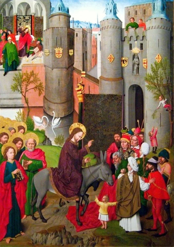 Niedziela Palmowa, czyli Męki Pańskie 29 marca 2026; Rok A, II : Zbliża się najświętszy czas w Kościele. Rozpoczyna się Wielki Tydzień, który ma nas wszystkich bezpośrednio przygotować na święta Wielkiej Nocy, Zmartwychwstania Pańskiego. Dzisiejsza liturgia streszcza cały Wielki Tydzień. Rozpoczyna się on jednak od tryumfalnego wjazdu Jezusa do Jerozolimy. Trzymane w rękach gałązki palm mają nam przypomnieć to ważne wydarzenie z życia Chrystusa. Wraz z mieszkańcami Jerozolimy witamy Go wkraczającego do miasta jako króla. Owo wkraczanie może mieć także znaczenie symboliczne, bowiem "Jerozolimą" jest moje życie, moje serce. Rozważmy więc nasze powitanie wkraczającego Mesjasza. Co z tego powinno wyniknąć, jakie powinno być nasze zachowanie? ![]() Najpierw należy sobie uświadomić, że Jezus przychodzi jako Mesjasz Król Pokoju. Nie można przyjmować Boga do swego serca bez wewnętrznego pokoju, płynącego z czystości serca. Niestety, w obecnych czasach istnieje wiele niepokoju, który nie pozwala na przyjęcie Jezusa. Znakiem czasu staje się lęk przed Chrystusem. Dlatego jeśli ma się powtórzyć scena wjazdu Mesjasza do Jerozolimy mojego serca, muszę zlikwidować strach. Chrystus nie zamiesza w naszym życiu, nie postawi zbyt wygórowanych wymagań. Wyjście Mu naprzeciw możliwe jest tylko wtedy, gdy Jemu zaufamy; gdy odkryjemy, że Jego wjazd w naszym życiu jest błogosławionym wydarzeniem. Nie uciekajmy więc przed wymaganiami, które stawia Chrystus. Nie uciekajmy przed Jego trudną nauką o krzyżu, która wymaga od człowieka samozaparcia i ofiarności. Tylko wtedy możemy go prawdziwie przywitać jako Króla Pokoju! ![]() Patrząc na wjazd Jezusa do Jerozolimy, trzeba także odkryć prawdę, że mieszkańcy tego miasta spontanicznie zrywali gałązki i witali Mesjasza. Spontaniczność taka likwiduje wszelkie kalkulacje. Spontaniczność nie pozwala na myślenie w kategoriach czy się to opłaca. Dlatego też w przyjmowaniu Jezusa do swojego życia musi być wiele spontaniczności. Nie można na przykład obliczać, czy przebaczenie jest opłacalne. Przyjęcie Jezusa powinno być odruchem serca, a nie wyrachowanym działaniem. Spontaniczne przyjęcie Chrystusa likwiduje wszelką dyskusję nad słusznością prawd głoszonych przez Mistrza z Nazaretu. ![]() W dzisiejszym wspomnieniu wjazdu Jezusa do Jerozolimy należy odnaleźć jeszcze jedno ważne przesłanie. Jest nim przestroga przed zdradą. Jak pokazały wydarzenia Wielkiego Tygodnia, w przeciągu kilku dni można od miłości przejść do nienawiści. Od wierności do zdrady może być tylko jeden krok. Powinniśmy więc dziś zapytać, w których dziedzinach życia to napięcie pomiędzy wiernością Bogu a Jego odrzuceniem jest najbardziej możliwe. U progu Wielkiego Tygodnia każdy z nas powinien odkryć to "najsłabsze ogniwo" łączące z Bogiem. Chodzi bowiem o to, aby zawsze swoim życiem mówić witaj, a nie ukrzyżuj Go! Prośmy o to gorąco słowami modlitwy: ![]() O święta mocy Jezusowa, któraś leczyła chorych, |