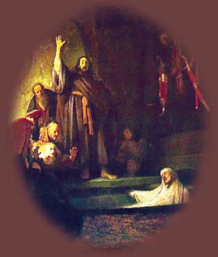 Wskrzeszenie Łazarza Według Ewangelii przyjaciel Jezusa należał do ludzi zamożnych i szanowanych w swojej okolicy. Pewnego dnia zapadł on na bardzo ciężką chorobę i wkrótce zmarł. Wtedy jego siostry zwróciły się do Chrystusa i przekazały mu wiadomość, że Łazarz jest w bardzo złym stanie. Syn Boży odpowiedział, że "choroba nie zmierza ku śmierci, lecz ku chwale Bożej. Dzięki niej Syn Boży dozna chwały". Wtedy postanowił powrócić ze swymi uczniami do Betanii i "obudzić" swego przyjaciela. Kiedy Jezus przybył na miejsce, Łazarz już od czterech dni leżał w grobie. U jego sióstr zjawiło się wielu Żydów, by pocieszyć je po stracie brata. (...) Przed Mesjasza wybiegła Marta, a Chrystus skierował do niej te słowa: "Ja jestem zmartwychwstaniem i życiem. Kto wierzy we Mnie, nawet jeśliby umarł, nie umrze na wieki. Czy wierzysz w to?". Siostra Łazarza potwierdziła słowa Syna Bożego i udali się do ich domu. Gdy dotarli na miejsce, Jezus zapłakał, a wielu zebranych zaczęło szemrać przeciwko Niemu mówiąc, że skoro dokonywał już tylu cudów, nie powinien pozwolić umrzeć przyjacielowi. Wtedy Jezus poprosił o odsłonięcie grobu i zawołał brata Marii i Marty tymi słowy: "Łazarzu, wyjdź na zewnątrz!". Ku wielkiemu zdziwieniu zebranych, ten rzeczywiście opuścił miejsce swego pochówku i, obandażowany i pokryty materiałami, ukazał się zgromadzonym. Po tym wydarzeniu wielu ludzi uwierzyło w naukę Jezusa i utwierdziło się w przekonaniu, że na świecie pojawił się prawdziwy Mesjasz. Jego wskrzeszenie ma w Kościele szczególną wymowę - stanowi potwierdzenie faktu zmartwychwstania, którego dostąpią wszyscy wierzący w Boga. ![]() Obraz Rembranta |